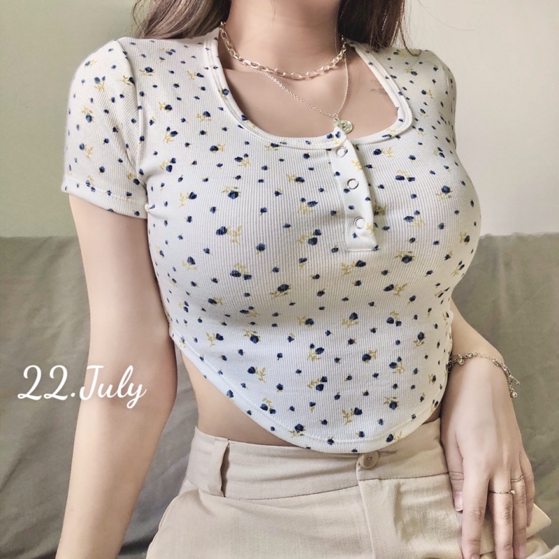 Áo croptop hoa nhí tôn dáng đỉnk kout🌼🌸🌻áo kiểu khoét eo, cổ U có nút bấm🌸🌻 free ship