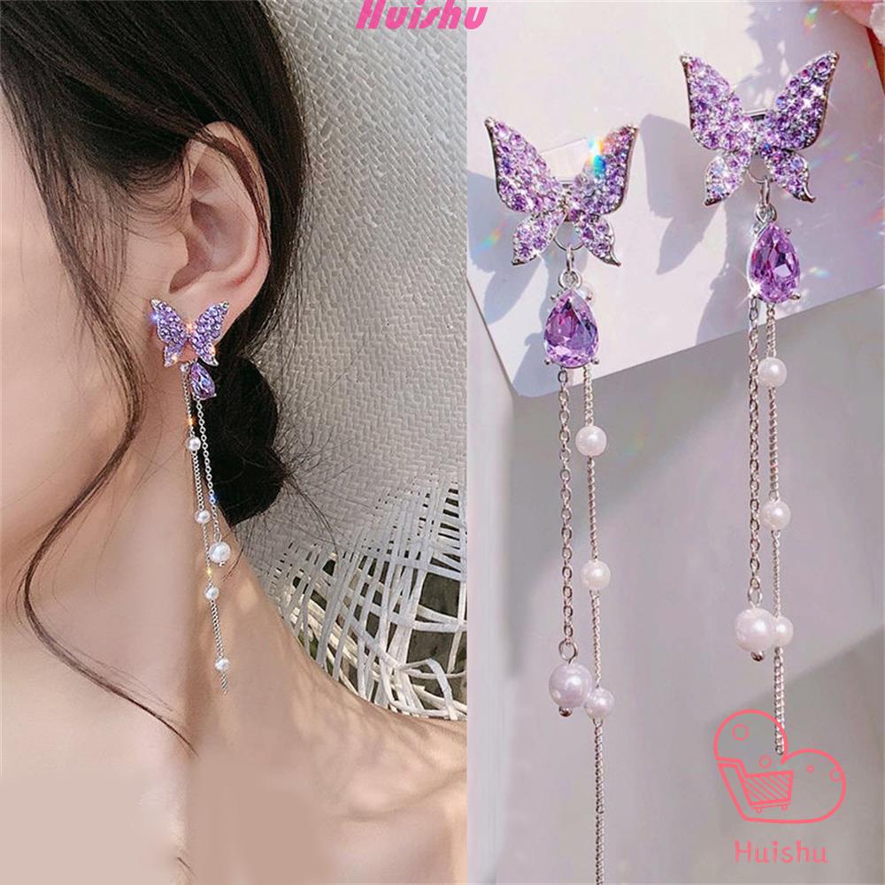 Đôi Bông Tai Nụ Dáng Dài Hình Bướm Đính Ngọc Trai Thời Trang Xinh Xắn Cho Nữ free ship