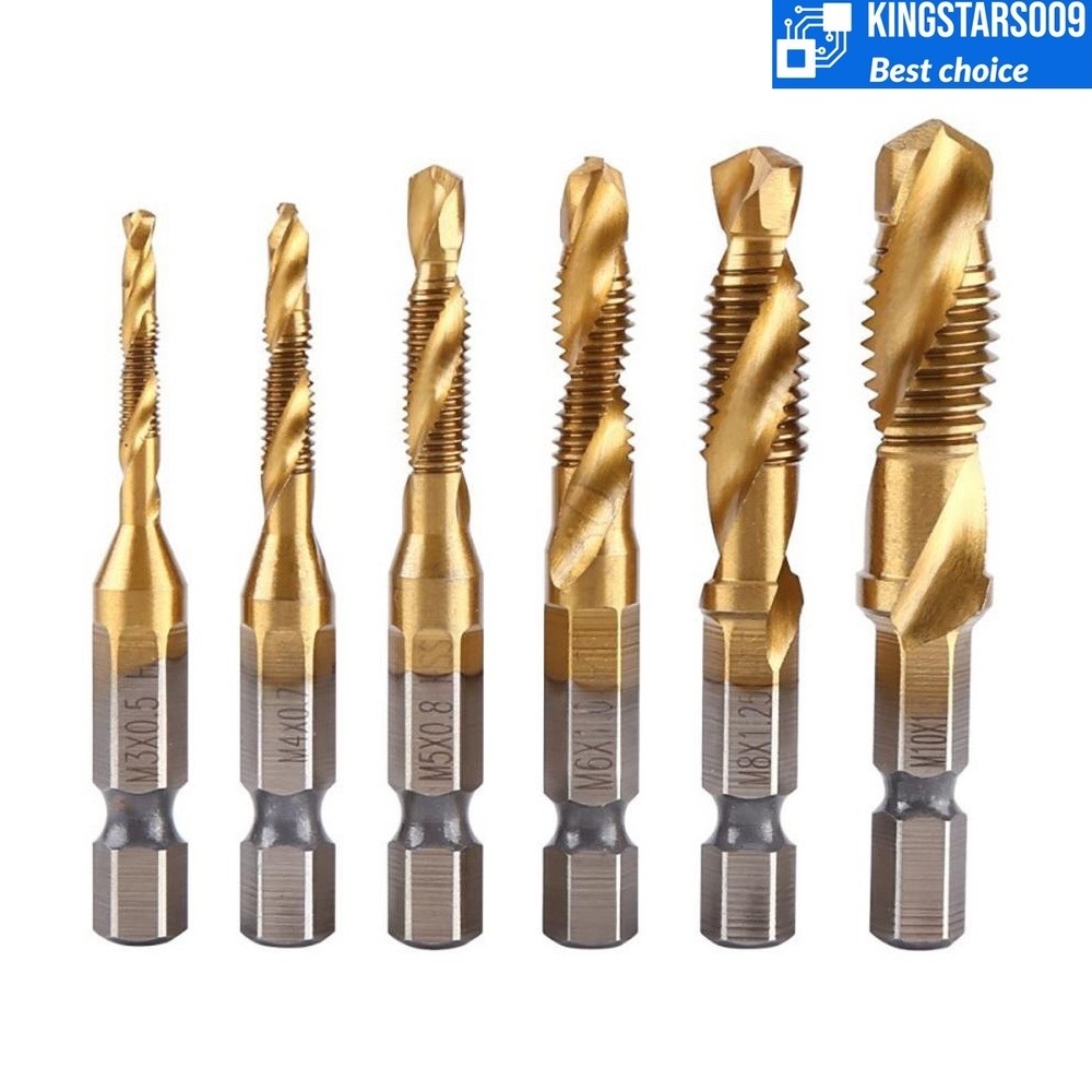 Set 6 mũi khoan taro tạo ren ốc mạ titan HSS 6542 free ship